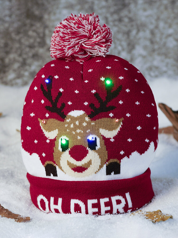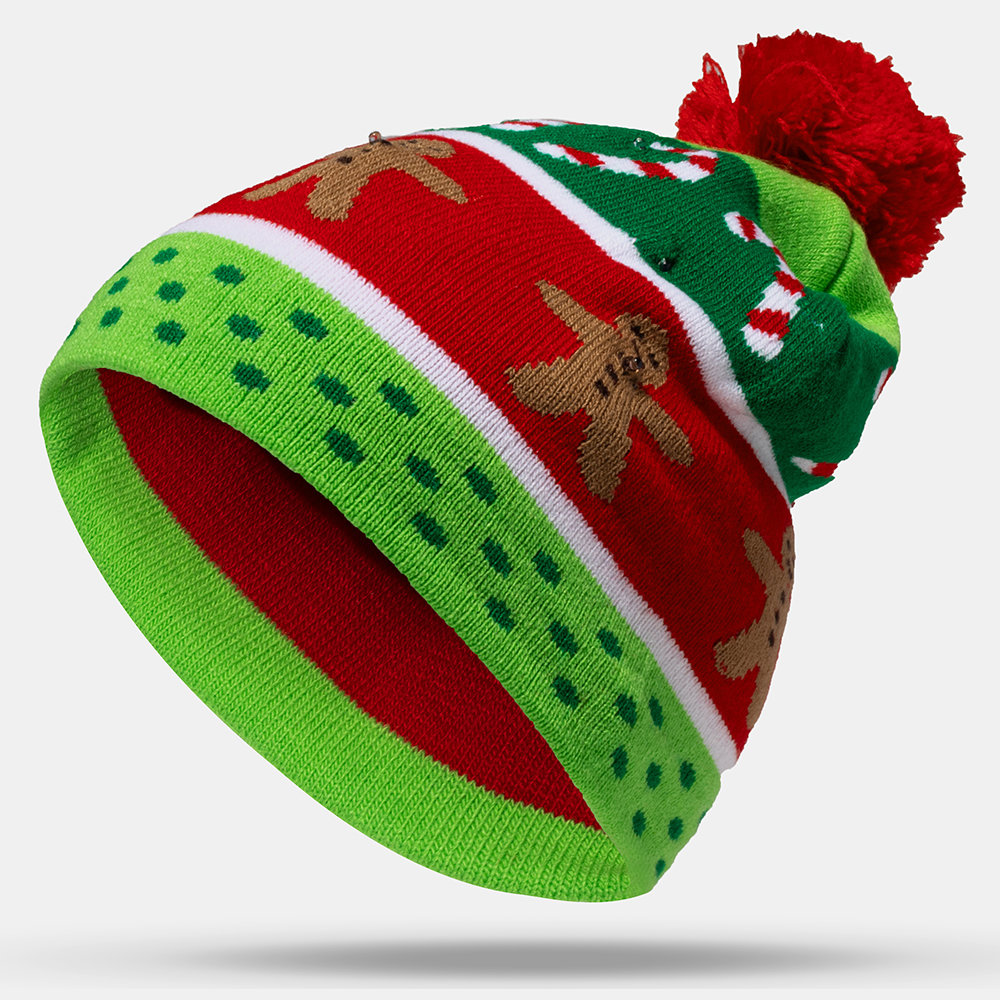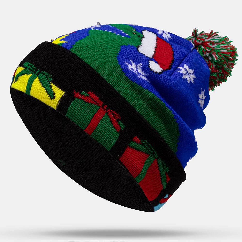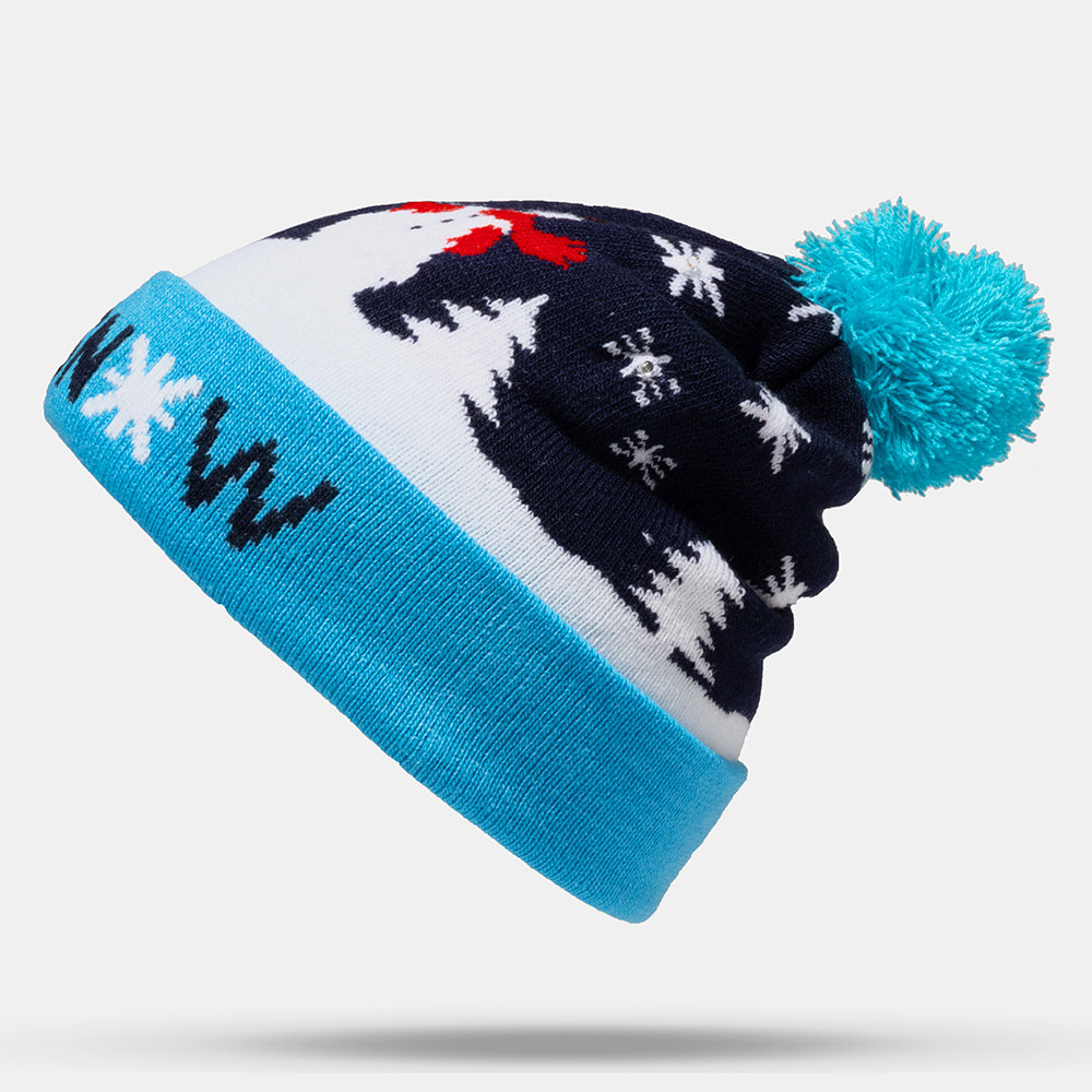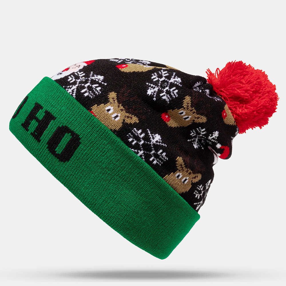 Christmas Snowman Elk Christmas Tree Cuffed Ball Knit Hat