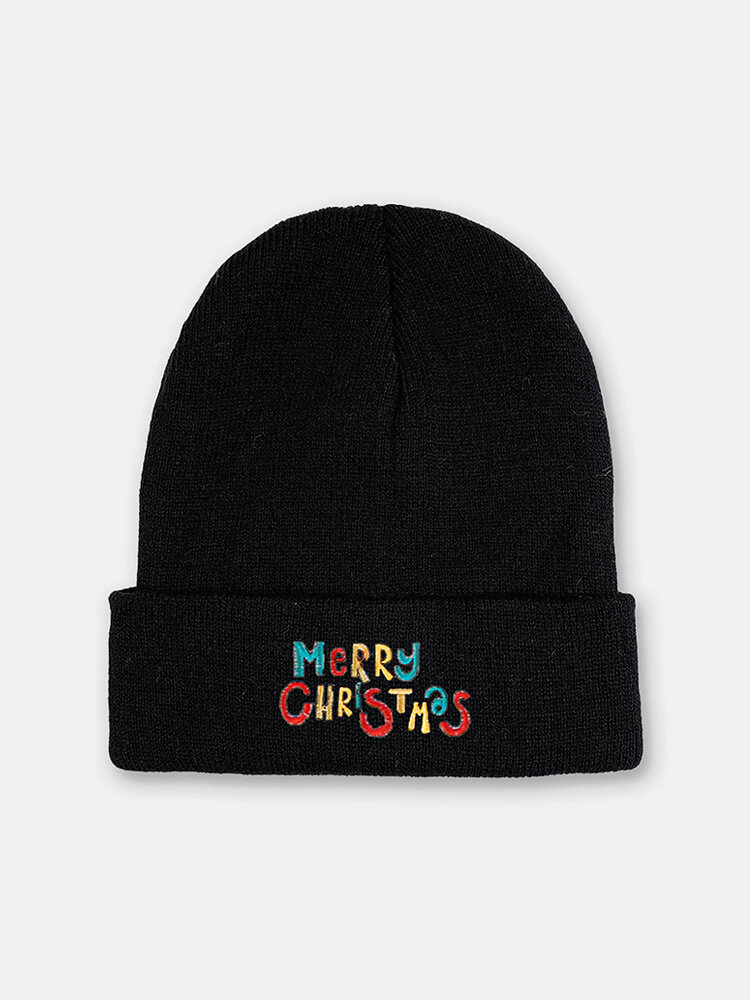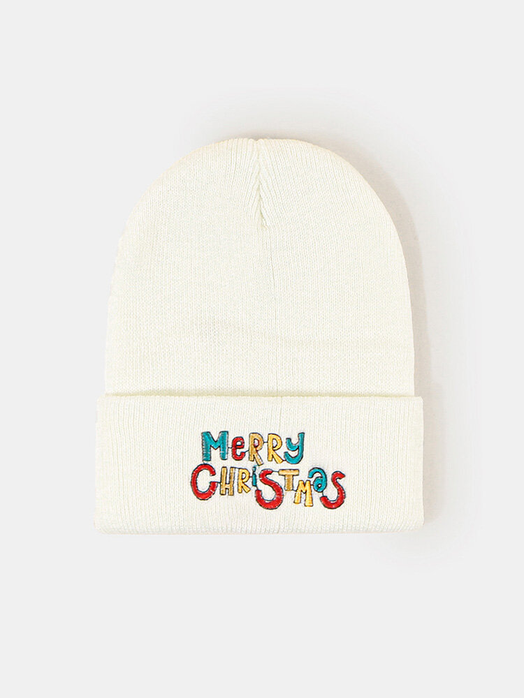 Christmas Unisex Acrylic Knitted Colorful Letters Pattern Embroidery All-match Warmth Brimless Beanie Hat