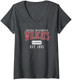 Womens Central Washington University Wildcats Est. Date V-Neck T-Shirt