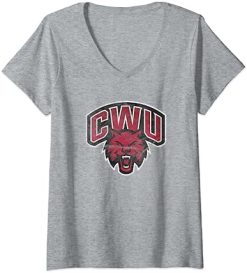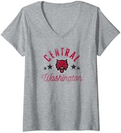 Womens Central Washington University Wildcats Logo V-Neck T-Shirt