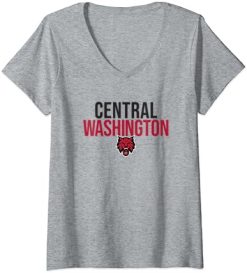 Womens Central Washington University Wildcats Stacked V-Neck T-Shirt