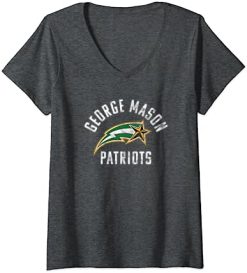 Womens George Mason University Patriots Distressed Primary Logo V-Neck T-Shirt