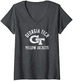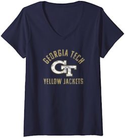 Womens Georgia Tech Yellow Jackets Distressed Primary V-Neck T-Shirt