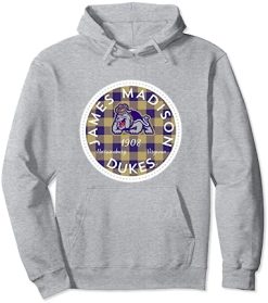 James Madison University JMU Dukes Plaid Badge Pullover Hoodie