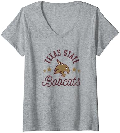 Womens Texas State University Bobcats Logo V-Neck T-Shirt -Vest Shirt Sales B1jzcojzO8S 62